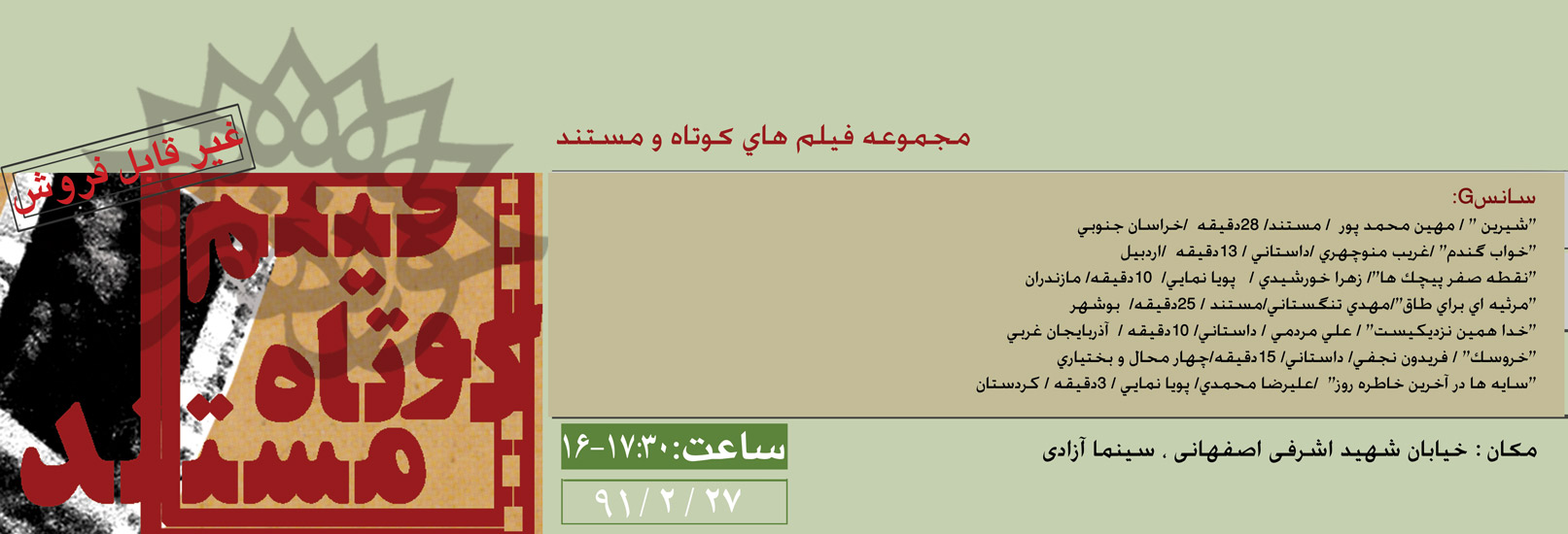 بليط برنامه هاي مختلف سومين جشنواره آثار و توليدات مراكز استاني حوزه هنري در بخش هاي نمايش، موسيقي و فيلم توسط حوزه هنري کرمانشاه توزيع مي شود.